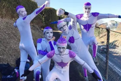 彼らは『ドラゴンボール』の人気キャラクターであるフリーザに扮し、独特の衣装とパフォーマンスでランナーを励まし続けています。