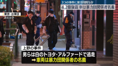 2026年1月、東京・上野で発生した4億円強盗事件では、仁琉容疑者が「主犯格」として指示役を務めました。現場近くで待機し、実行犯に指示を出し、逃走車両には父親名義のアルファードを使用しました。