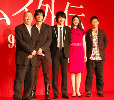 (左から)崔洋一監督、伊藤英明、松山ケンイチ、小雪、小林薫