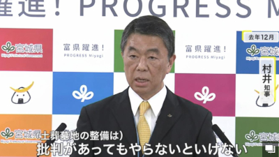 2024年、村井知事は県議会で「イスラム教徒の埋葬ニーズに対応するため、県内に土葬墓地を整備する」と表明しました。
