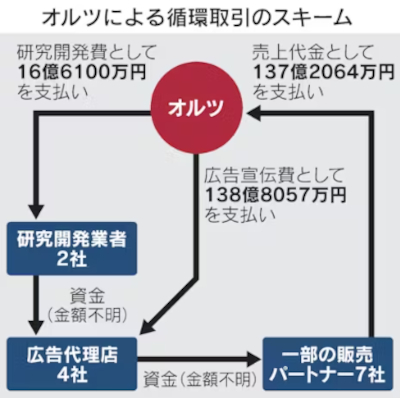 オルツの粉飾決算は、複数の代理店を介した「循環取引」によって行われました。