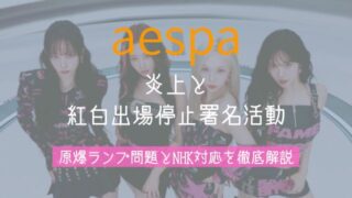 aespa炎上と紅白出場停止署名活動の背景を徹底解説。原爆ランプ問題からNHK対応、初出場理由までを時系列で整理し、世論の動向とグループのプロフィールも紹介します。